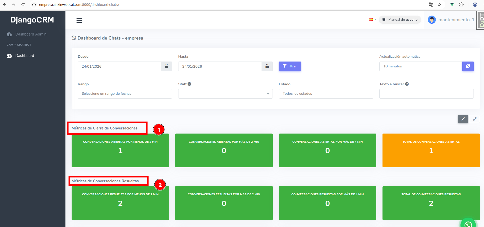 Color Rojo: Indica que la conversación ha excedido el tiempo máximo permitido. Requiere acción inmediata.